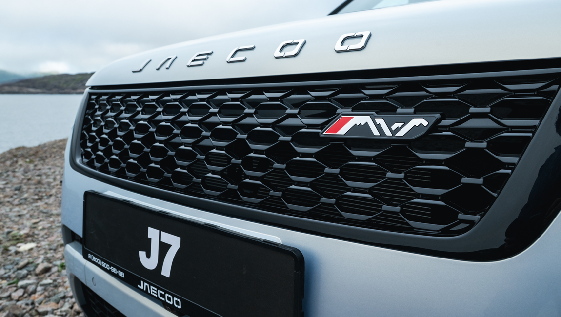 JAECOO J7LE предстает перед нами в облике современного и уверенного кроссовера, где внедорожная брутальность гармонично переплетается с элегантной сдержанностью. Его экстерьер – это сочетание прямых линий, массивных колесных арок и высокой посадки, ярко говорящая о готовности покорять любые дороги. Взгляд приковывает передняя часть: внушительная решетка радиатора, напоминающая пчелиные соты, словно щит, обрамляет узкие светодиодные фары с завораживающим «шашечным» узором. Благодаря такому необычному оформлению автомобиль будет узнаваем даже ночью.